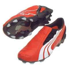 Velocity has a new name – v1.06. Representing the lightest PUMA product it serves one decisive purpose- to get you to the ball faster. The fine tuned pointed Aptolast and PUMA Lace Wrap System allows the upper to perfectly mold to the shape of your foot for optimal energy preservation. The minimalistic approach is maintained in the cut out heel counter. Fully embedded in the injected TPU frame, a 0.6 carbon fiber plate reduces the weight of the outsole while offering optimal pressure distribution and forefoot flexibility. The low profile running influenced outsole, with anatomically proven stud shape, has been optimized to give you the best in grip, maneuverability and rear foot stability. This boot is suited for firm natural surfaces.